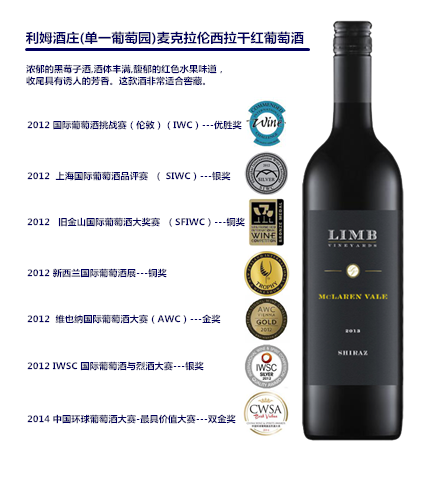 利姆酒庄(单一葡萄园)西拉子干红获奖信息: